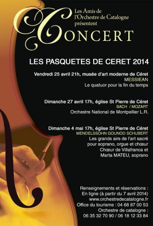 La Polifònica de Vilafranca participa per cinquena vegada al Festival "Les Pasqüetes" de Ceret. En aquesta ocasió, es tracta d’un concert per a cor, soprano i orgue, en el que s’interpretaran obres de música sacra de compositors catalans (A.Nicolau, A.Ferrer, P.Casals, B.Vivancos, E.Vila i Perarnau), obres de Gounod i Schubert , i finalment el magnífic Psalm 42 de Mendelssohn.