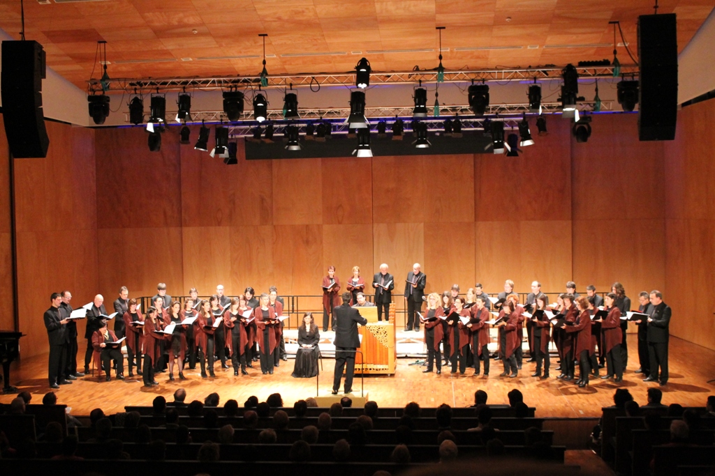 La coral vilafranquina, dirigida per David Hernández i Eduard Vila, va oferir, a la primera part de la vetllada, set peces que formen part del cant de les Vespres de la Mare de Déu. Es tracta d’unes obres escrites per a vuit veus, solista –la soprano Maria Pujades va estar magnifica en el seu compromès paper- i orgue positiu interpretat pel mateix Eduard Vila. Aquesta mateix programa, una mica més ampliat, ja el va presentar la Polifònica l’octubre de 2010 en un concert celebrat a la sala Oriol Martorell de l’Auditori de Barcelona com a obertura del cinquè Cicle Coral a l’Auditori.