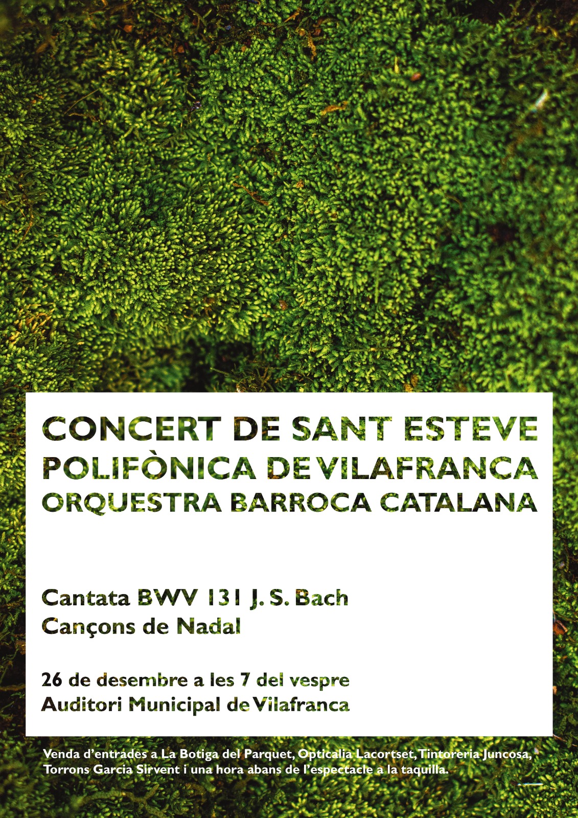 La Polifònica de Vilafranca va afegir una nova peça en el seu amplíssim repertori musical en el Concert de Sant Esteve celebrat dimecres a l’auditori municipal. Es tracta de la cantata BWV 131 Aus der Tiefen rufe Ich, Herr, zu dir (Des de l’abisme clamo a vos, Senyor) composada per Johann Sebastian Bach l’any 1707 i que, per tant, correspon a una obra de joventut –tot just tenia 22 anys quan es va estrenar-, però que anticipa l’execel·lència que el compositor alemany demostrarà en les obres de maduresa. La cantata BWV 131 és una obra curta –consta de cinc números- per a cor, orquestra i dues veus solistes que conjuga el lament de la pèrdua amb l’esperança d’obtenir la protecció divina.